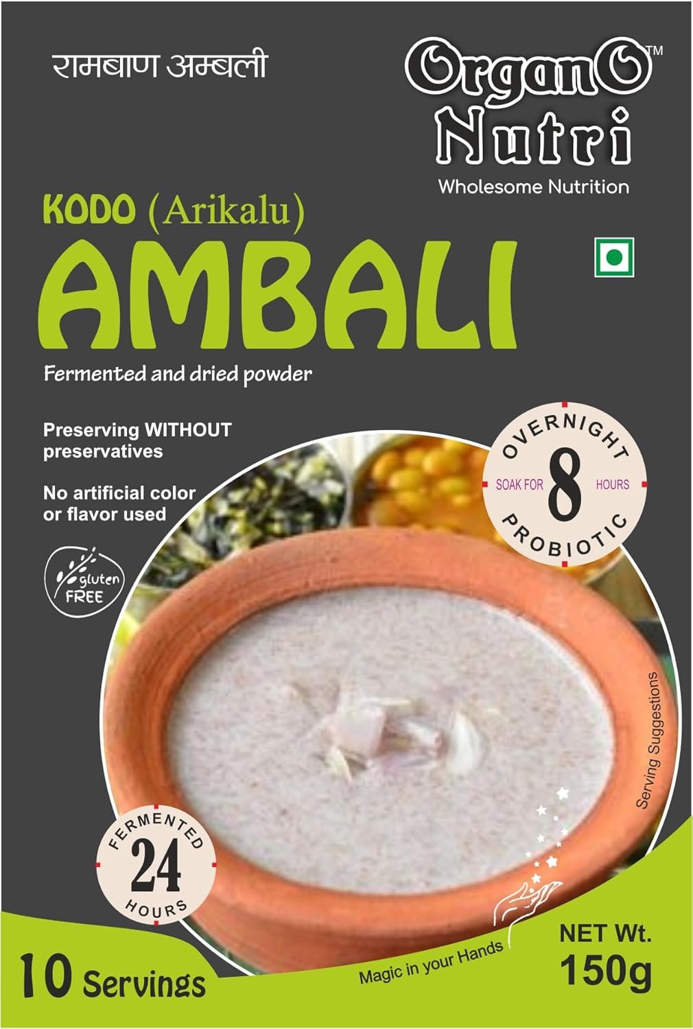 Organo Nutri 24Hr. Fermented Kodo Millet Ambali Powder,2 Packs Of 150G Each,Probiotic Overnight Ambali,Non-Gmo,Gluten Free&Vegan