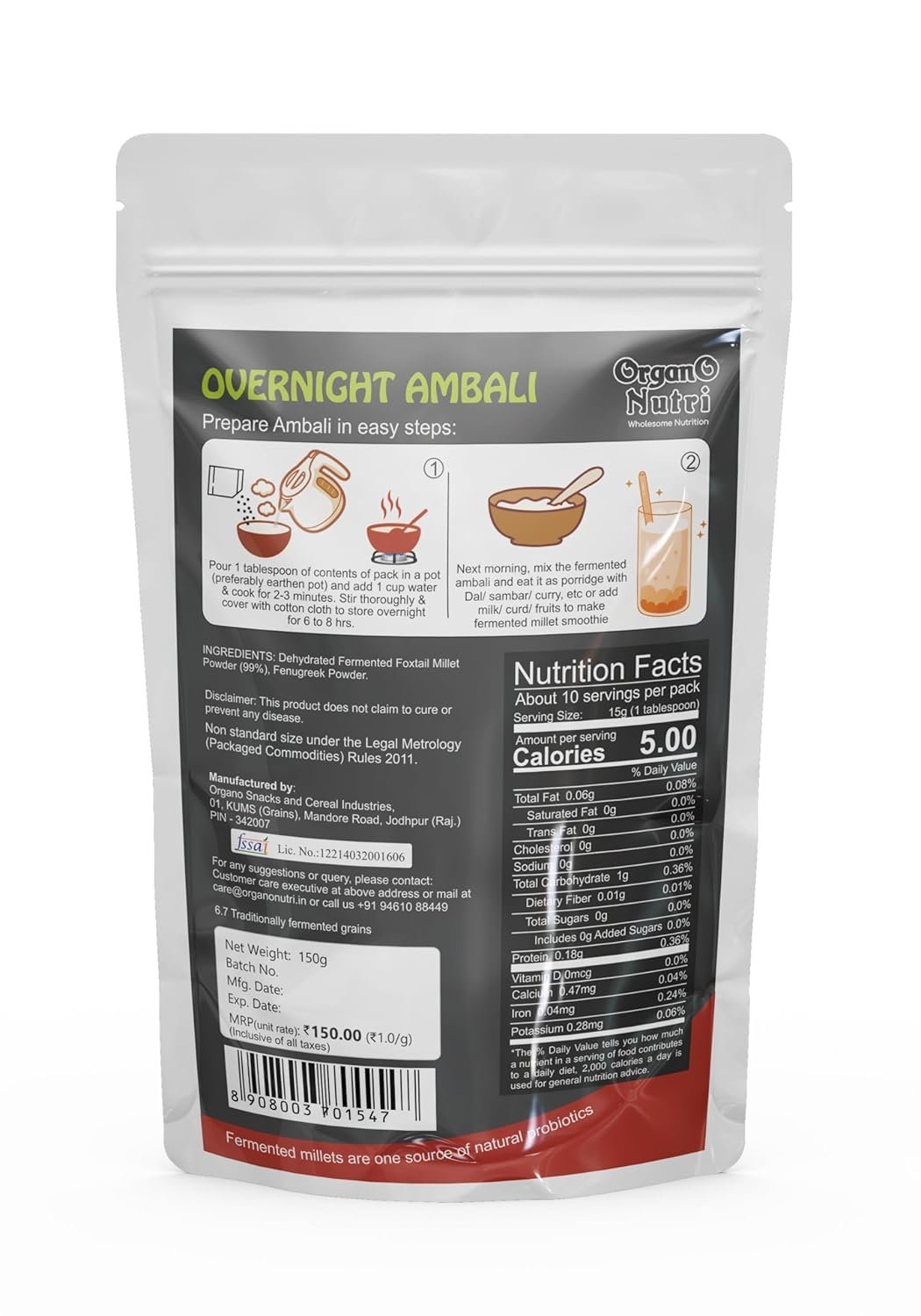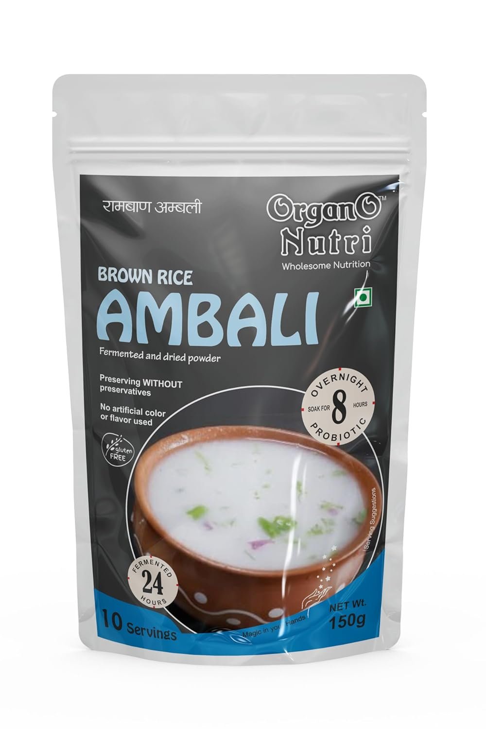 OrganoNutri 24Hr. Fermented Brown Rice Ambali Powder, 300g (2 Packs of 150g), Probiotic Overnight Ambali, Non-GMO, Gluten-Free, Vegan, Vegetarian